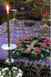 В Свято-Николаевском Братском храме г. Бреста накануне вечером духовенство прихода соборно совершило Всенощное бдение с литиёй. После Великого славословия был совершён вынос на центр храма и Чин воздвижения Честного и Животворящего Креста. Возглавил богослужение настоятель прихода протоиерей Пётр Романович.