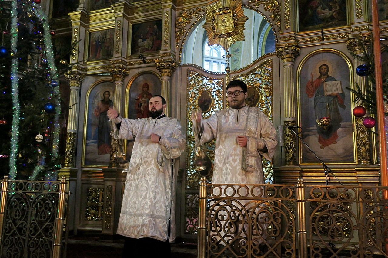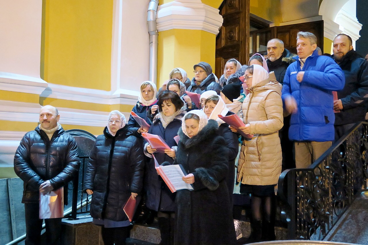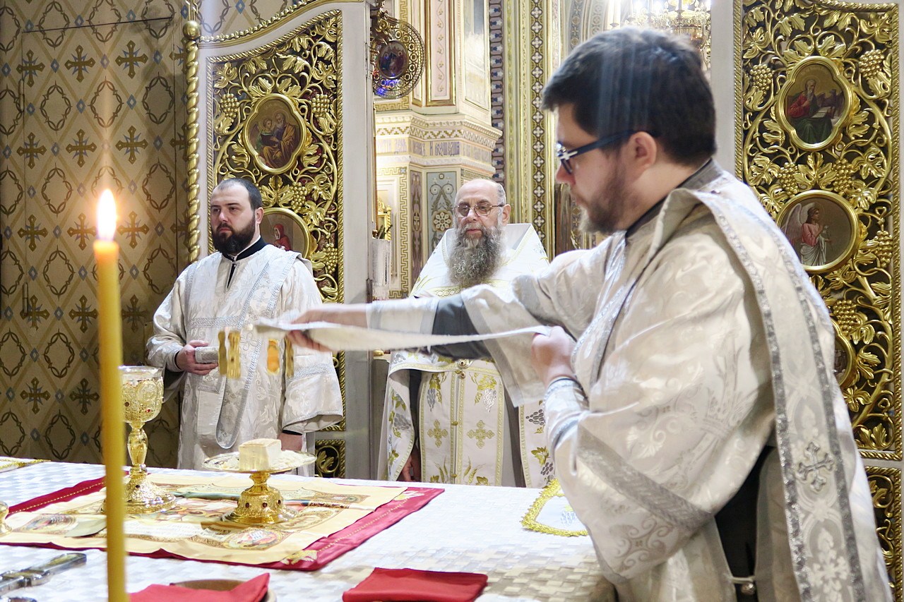 Литургические песнопения звучали в исполнении хора малого клироса под управлением регента А. Н. Дейнека.
