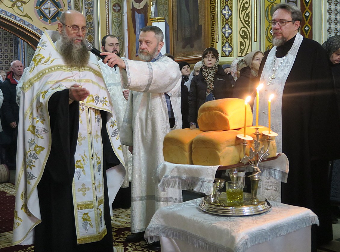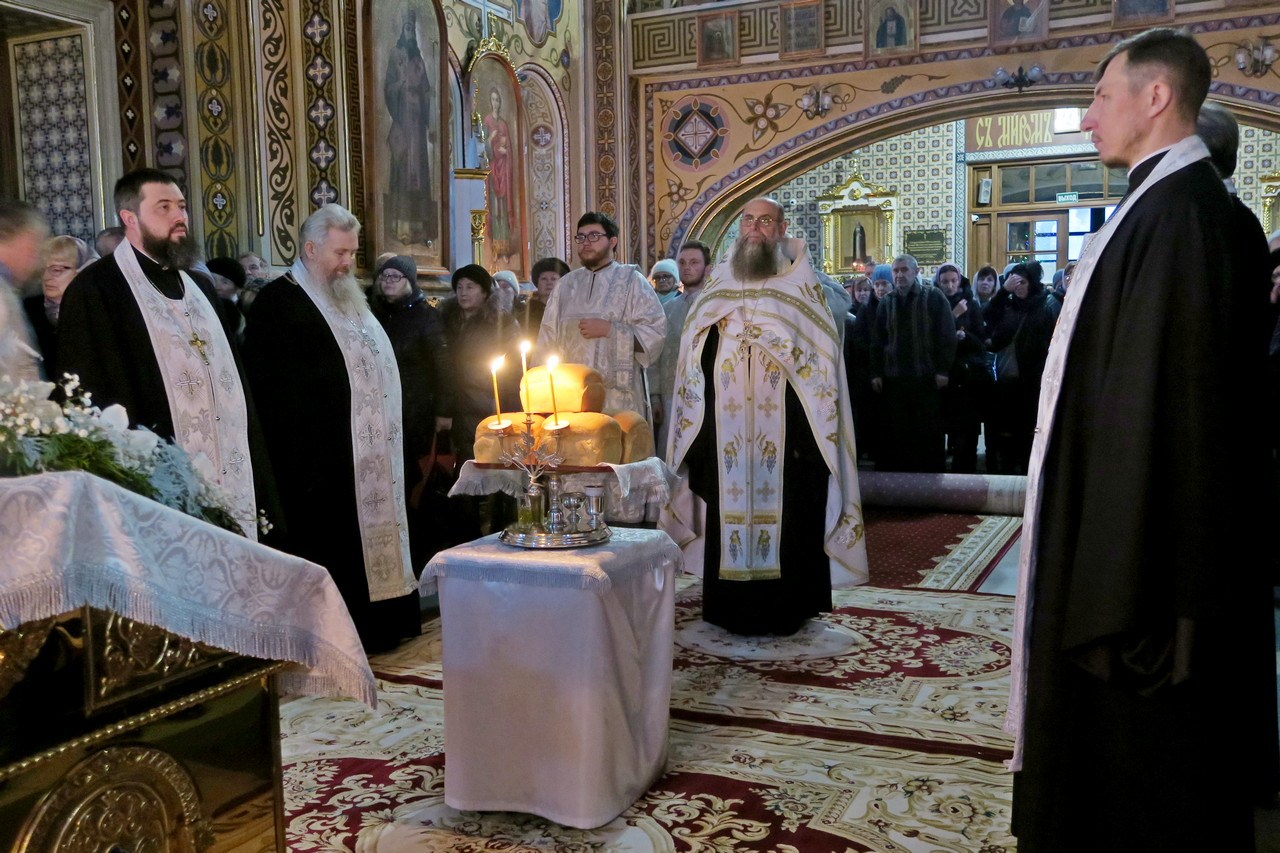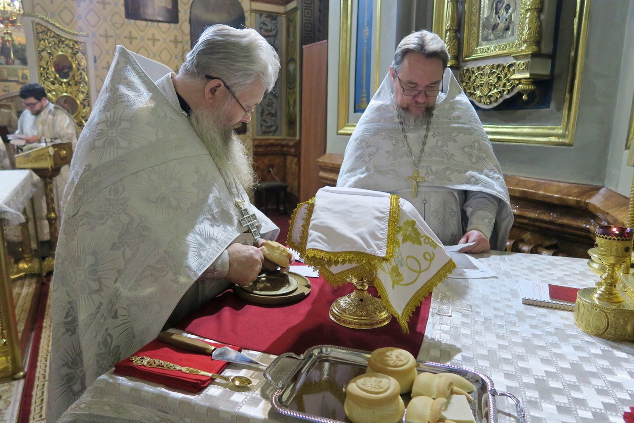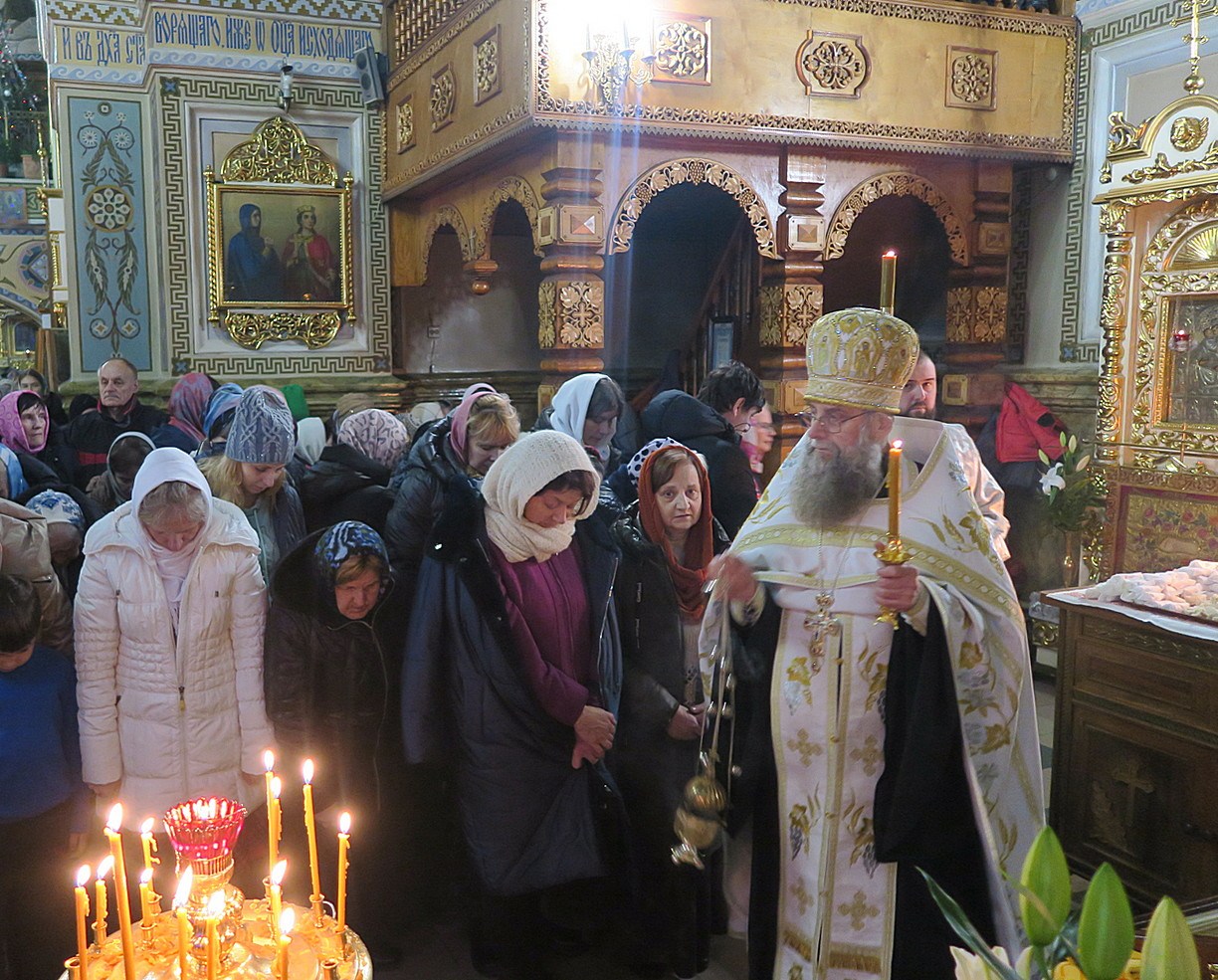 В Братском храме святителя и чудотворца Николая г. Бреста вечером накануне собором духовенства прихода было совершено праздничное Всенощное бдение с литиёй и освящением хлебов.