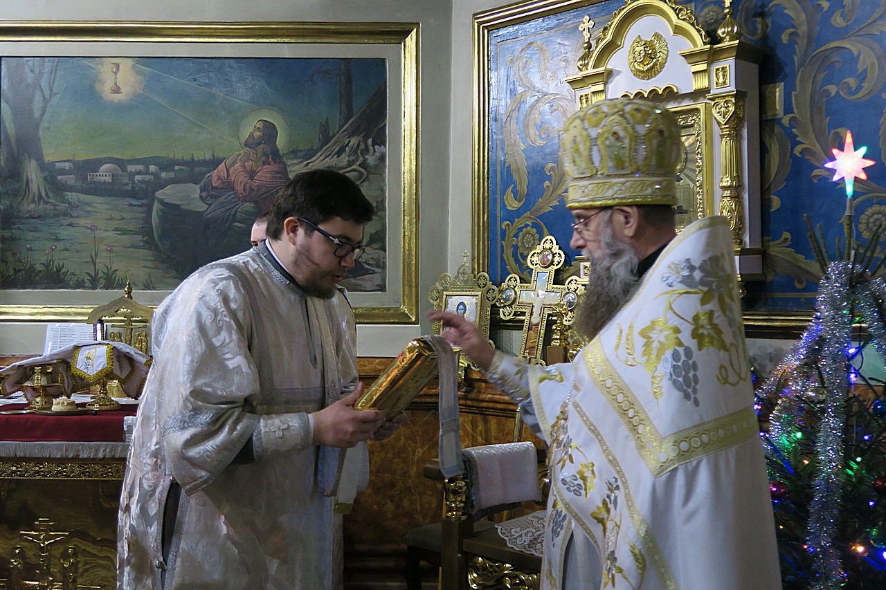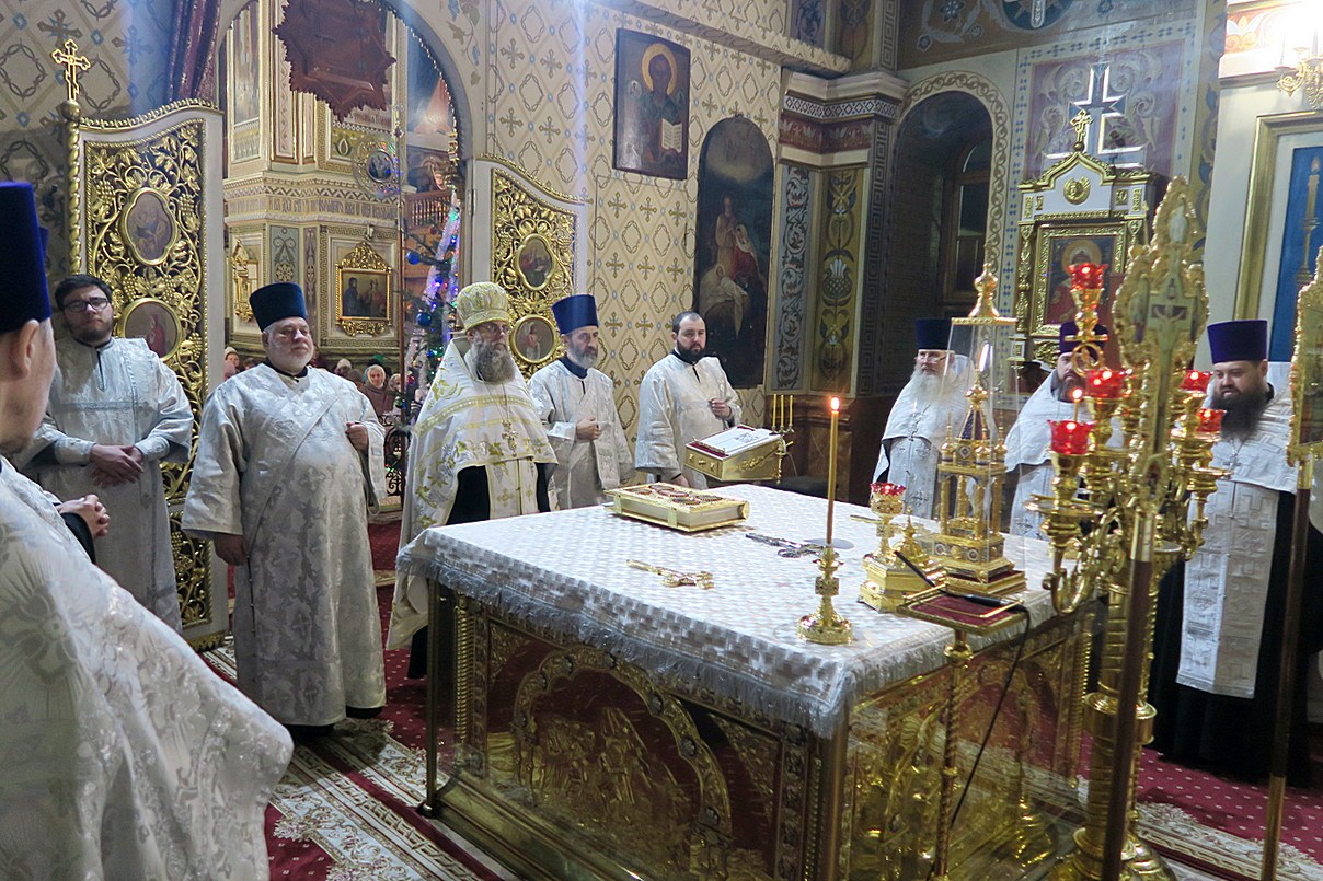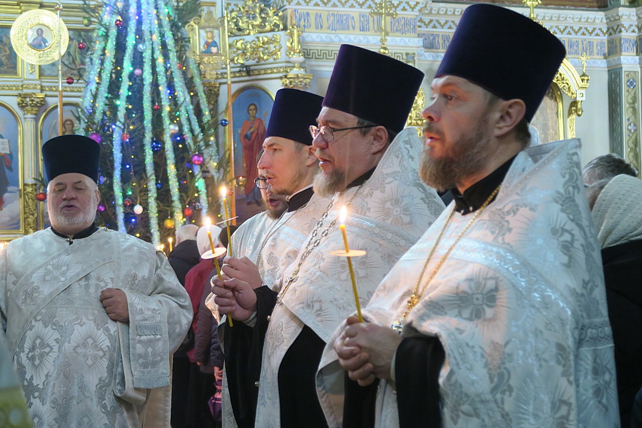 В полночь была совершена Божественная Литургия, которую возглавил настоятель прихода протоиерей Пётр Романович. Протоиерею Петру сослужили клирики: протоиерей Александр Гурпа, протоиерей Петр Мирочник, протоиерей Валерий Грицук, диакон Максим Нагнибеда и диакон Дмитрий Грицук. По запричастном стихе с пастырским назиданием на тему праздника к молящимся обратился протоиерей Пётр Мирочник.