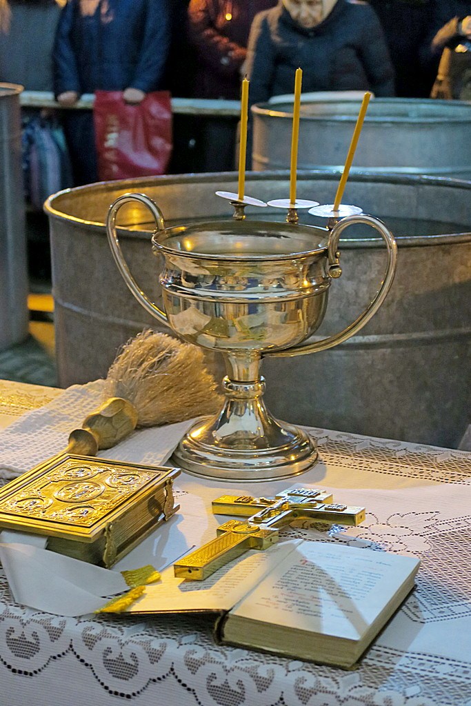 По окончании каждой из Литургий в храме был совершён Чин великого освящения воды.