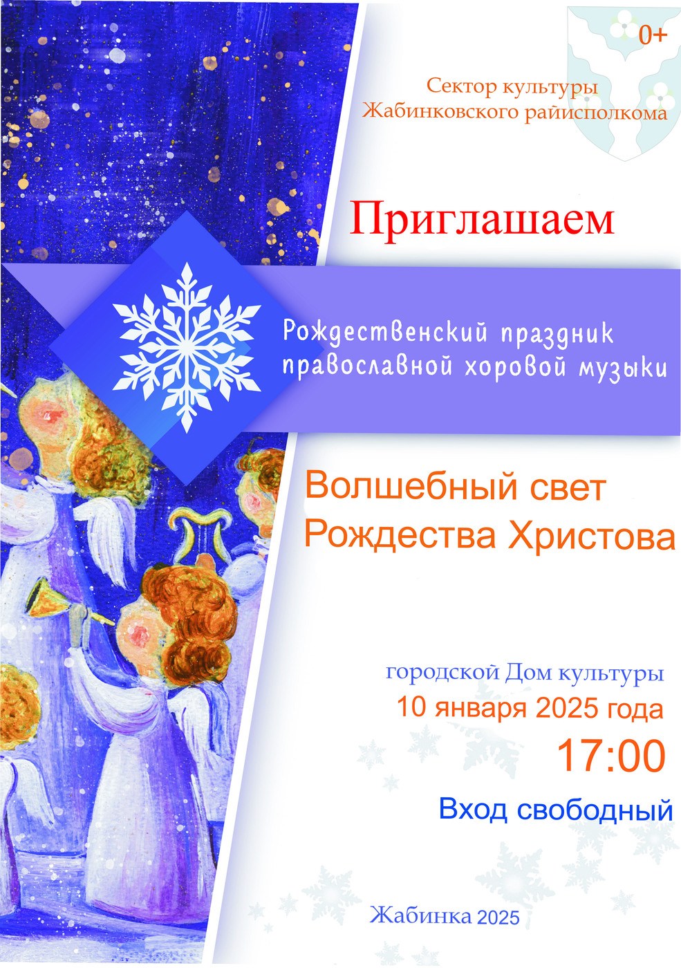 10 января 2025 года детско-юношеской хор воскресной школы прихода святителя Николая Чудотворца под управлением регента А. Н. Дейнека принял участие в выступлении в городском Доме культуры в г. Жабинка в Рождественском празднике хоровой музыки " Волшебный свет Рождества Христова.