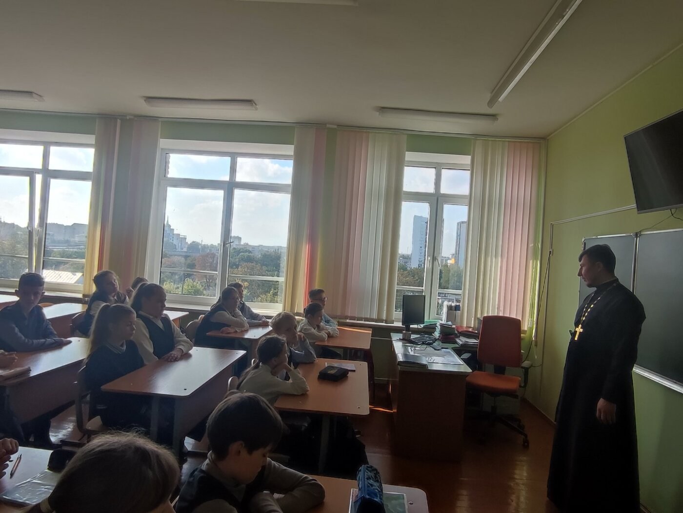 09 октября 2025 клирик храма иерей Алексий Рутич провёл беседу в 5 "Б" классе ГУО "Средняя школа № 19 г.Бреста имени Героя Советского Союза С.И. Сикорского" на тему "Праздник Покрова Божией Матери". В завершение встречи священник ответил на вопросы учеников и преподавателей.