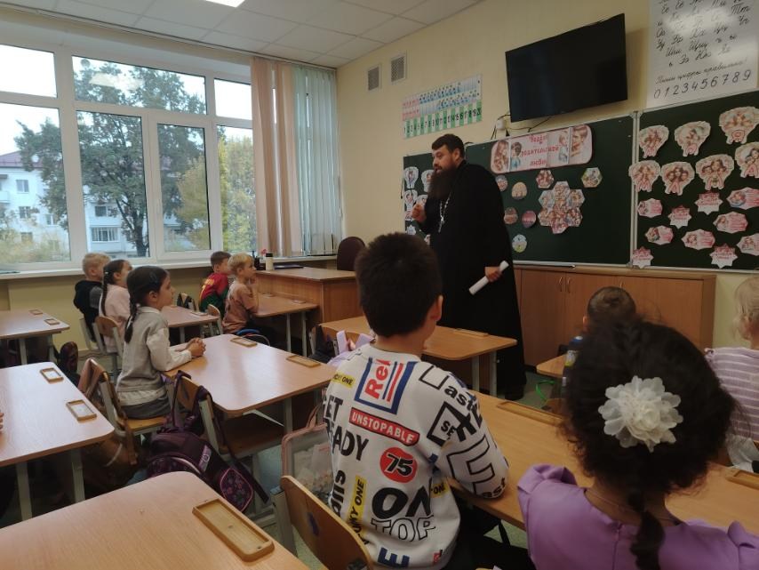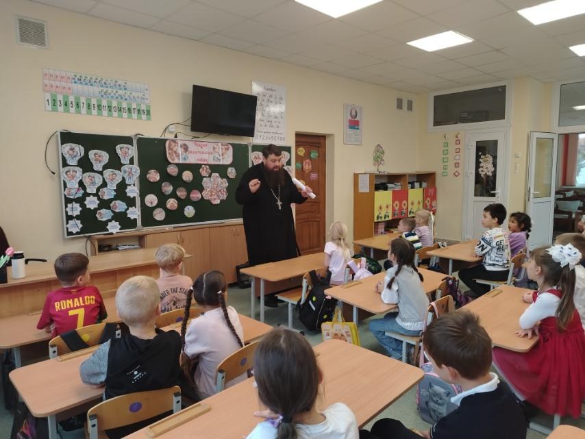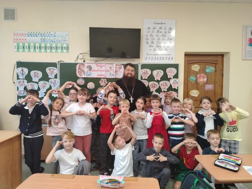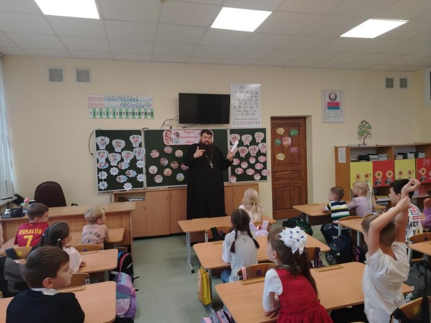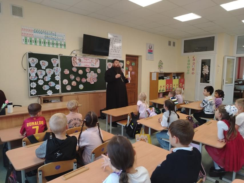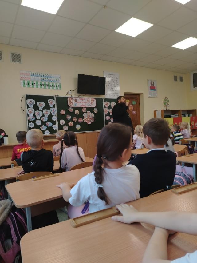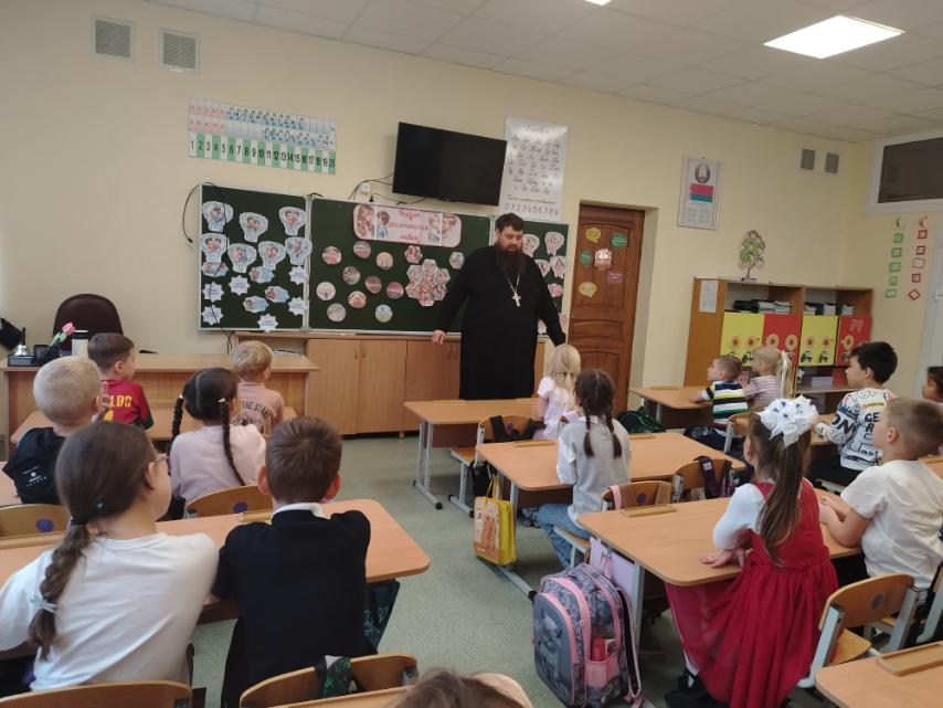 17 октября 2025 года клирик храма святителя Николая Чудотворца в г. Бресте иерей Павел Романович по приглашению администрации ГУО Начальная школа №5 г. Бреста провел классный час в 1 «Б» классе на тему: «Родительская любовь».