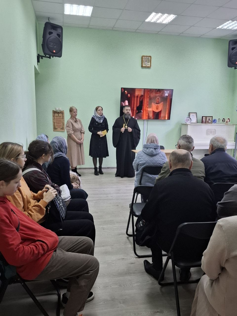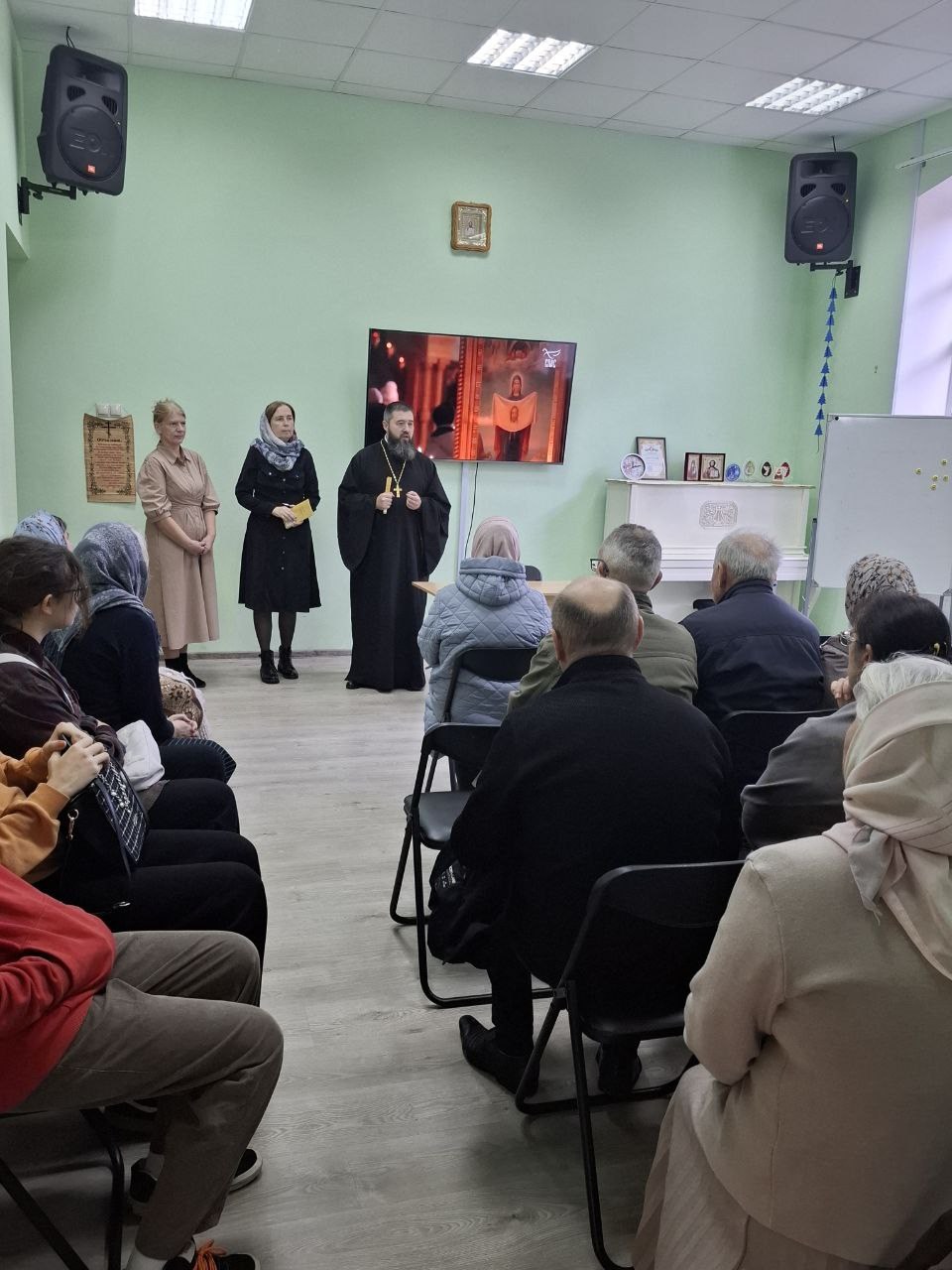 В ходе встречи к присутствовавшим с приветственным словом обратился клирик прихода иерей Димитрий Нагнибеда. Также, в мероприятии прняла участие руководитель епархиального отдела по вопросам семьи, защиты материнства и детства Евгения Михайловна Морозова.
