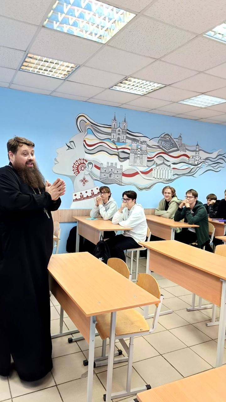 23 октября 2025 г. клирик храма святителя Николая Чудотворца в г. Бресте, председатель епархиального отдела по работе с молодежью иерей Павел Романович по приглашению администрации УО «Брестский государственный колледж приборостроения» провел беседу на тему: «Я и моя семья - без сквернословия».
