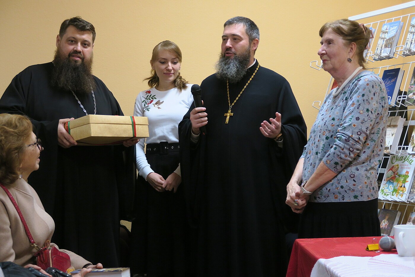От лица Прихода святителя Николая Чудотворца председатель епархиальной комиссии по работе приходских библиотек клирик прихода храма святителя Николая Чудотворца в г. Бресте иерей Димитрий Нагнибеда и председатель епархиального отдела по работе с молодёжью клирик прихода храма святителя Николая Чудотворца в г. Бресте иерей Павел Романович поблагодарили И. А. Богданову за эту прекрасную творческую встречу и подарили памятный сувенир, изготовленный руками мастериц творческой группы "Светлица". А также выразили надежду, что это мероприятие с участием полюбившейся писательницы не станет последним. По окончании встречи поклонники Ирины Анатольевны смогли получить памятный автограф.