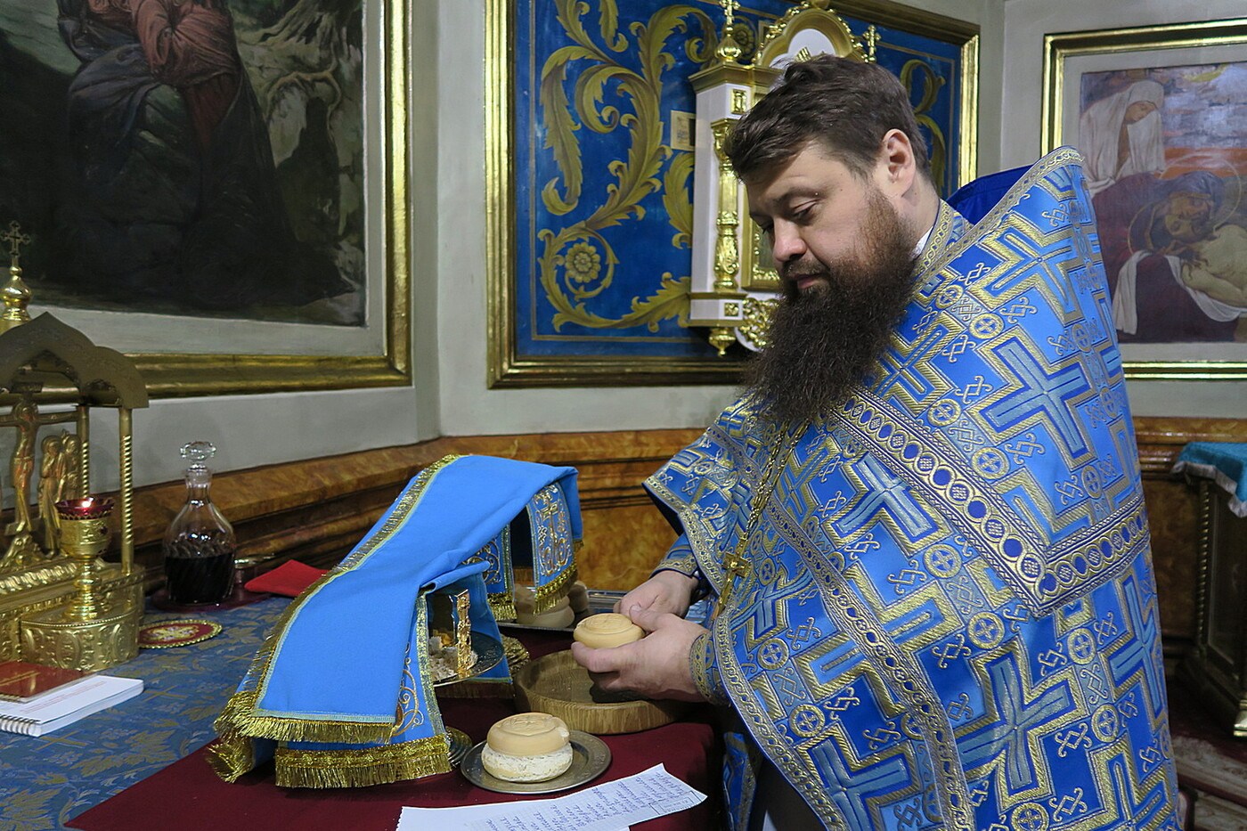 И в другом месте того же богослужения мы читаем, как Ей тихо говорит Архангел Гавриил, чтобы Она открылась Богу и приготовилась стать местом вселения грядущего Спасителя.