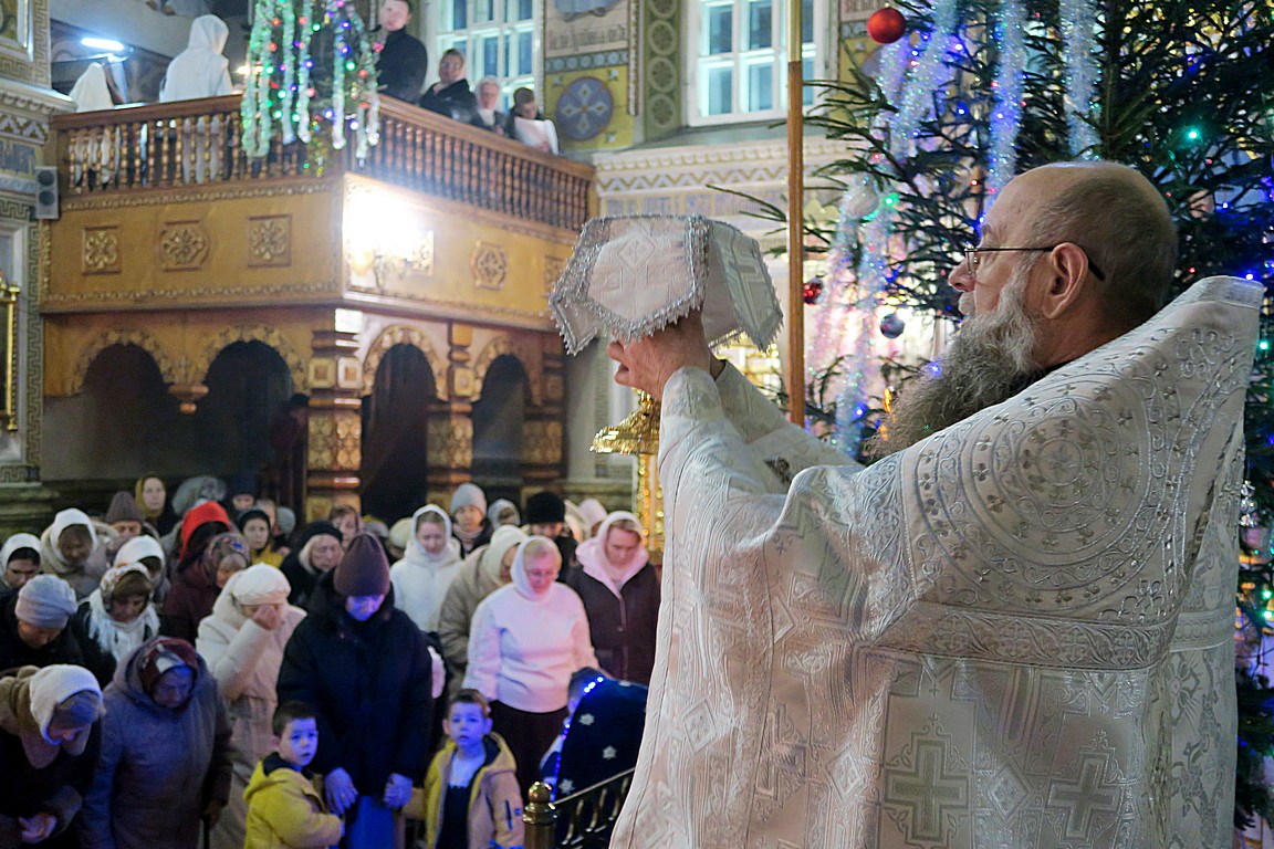 В праздник Рождества Христова на первой и второй Божественных Литургиях было прочитано Рождественское прослание Патриарха Московского и всея Руси.