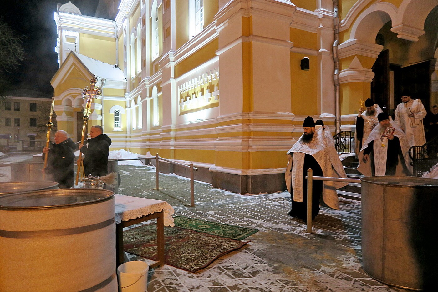 Водоосвящение называется великим по особенной торжественности обряда, проникнутого воспоминанием евангельского события, которое стало не только первообразом таинственного омовения грехов, но и действительным освящением самого естества воды через погружение в нее Бога во плоти. Вода эта называется Агиасмой, или просто крещенской водой. Под влиянием Иерусалимского устава с XI-XII века водоосвящение происходит два раза – и в Крещенский сочельник, и непосредственно в праздник Богоявления. Освящение в оба дня проходит одинаковым чином, поэтому вода, освященная в эти дни, ничем не отличается.