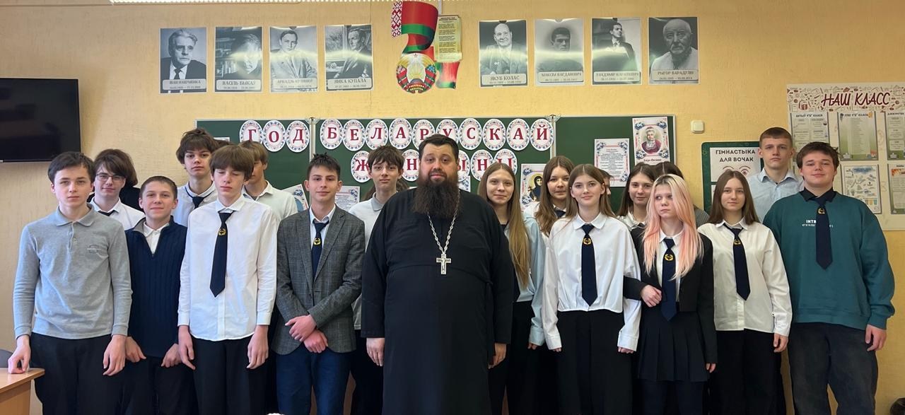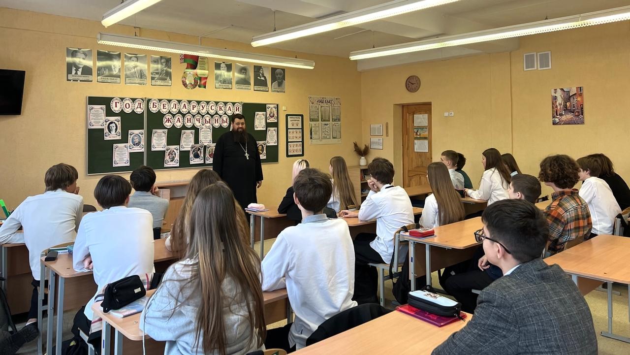 17 февраля 2026 года клирик храма святителя Николая Чудотворца в г. Бресте и руководитель отдела по работе с молодежью Брестской епархии иерей Павел Романович по приглашению руководства ГУО "Средняя школа № 33 г. Бреста" провел беседу с учащимися 9 «Б» класса в на тему: «Год белорусской женщины».