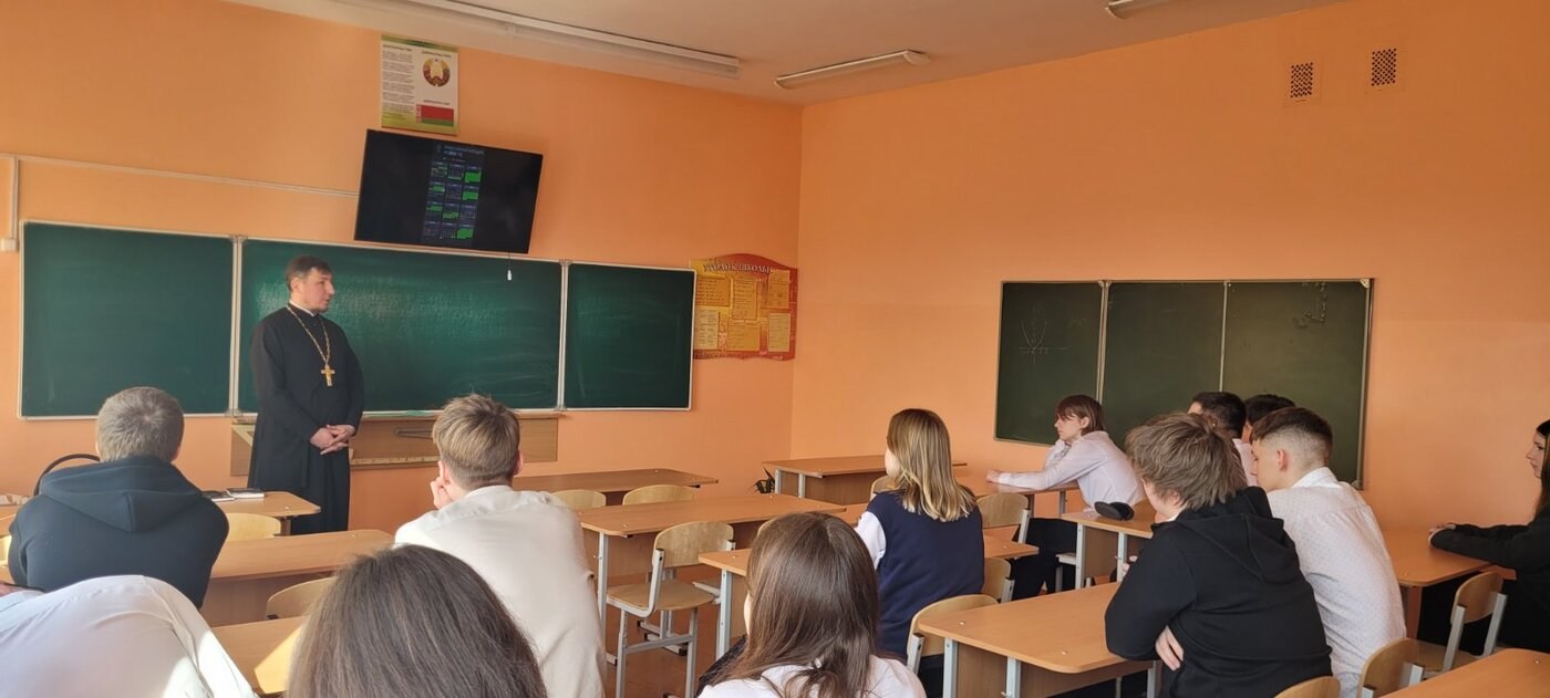 27 февраля 2026 года клирик храма святителя Николая Чудотворца в г. Бресте иерей Алексий Рутич провёл беседу в 10 "А" классе ГУО "Средняя школа № 19 г.Бреста имени Героя Советского Союза С.И. Сикорского" на тему "Великий пост".