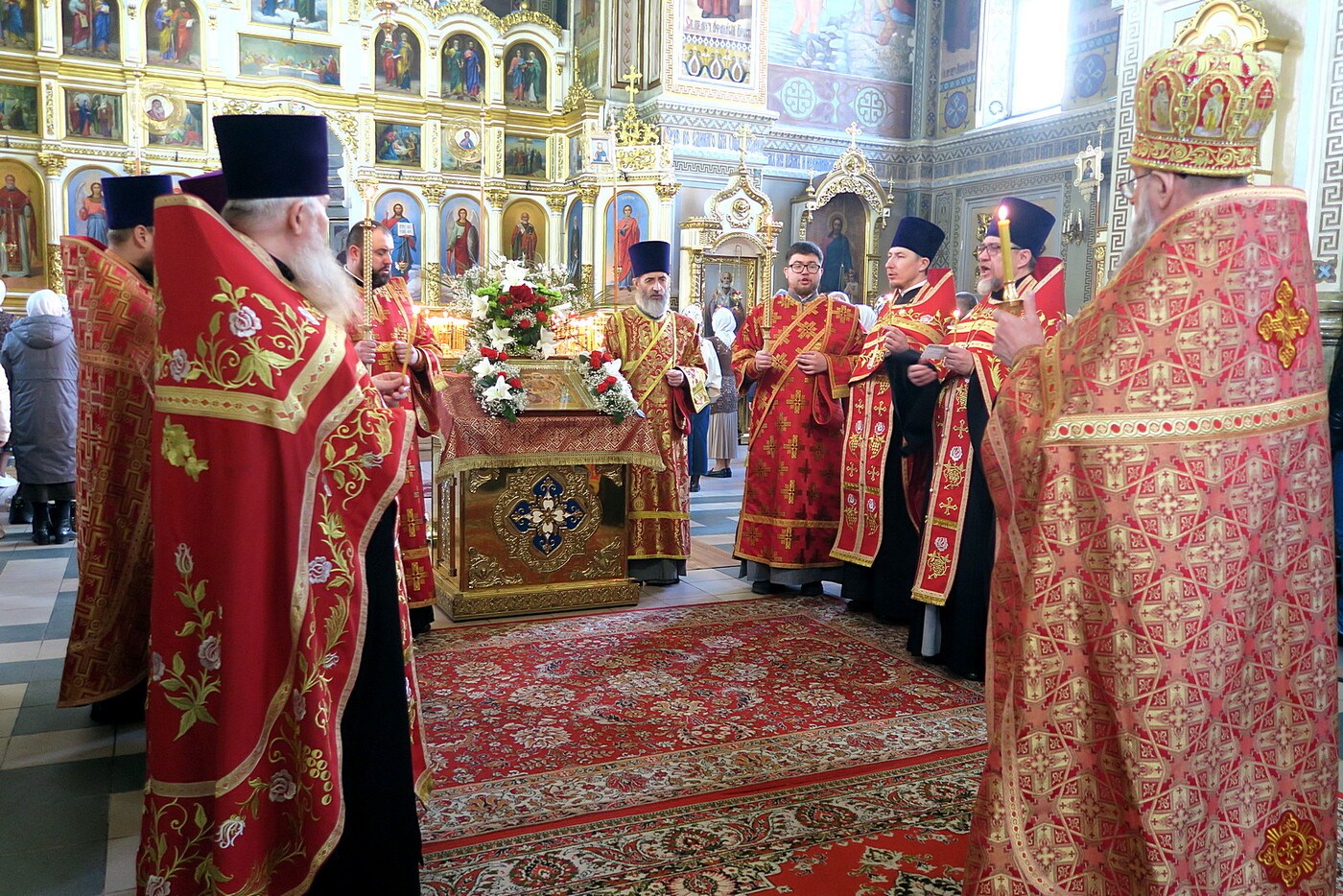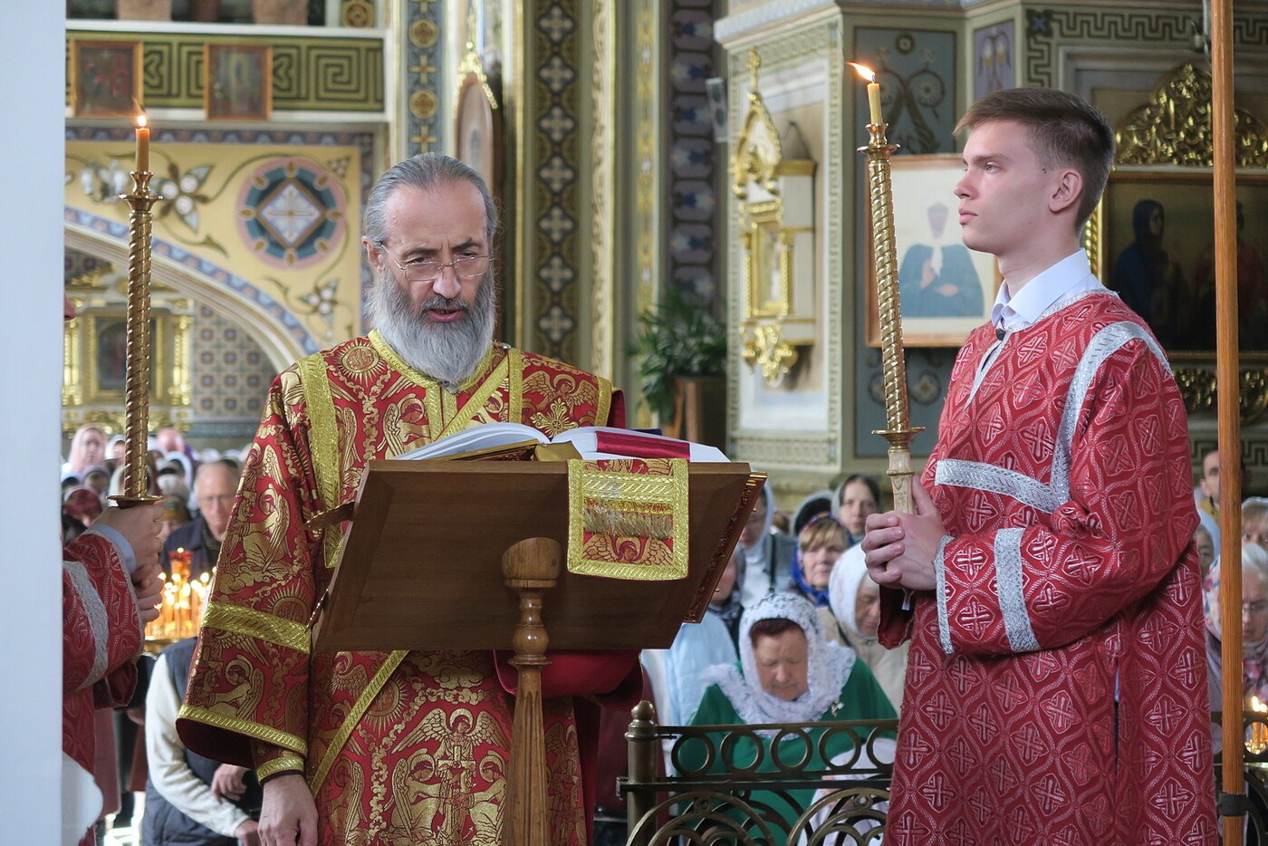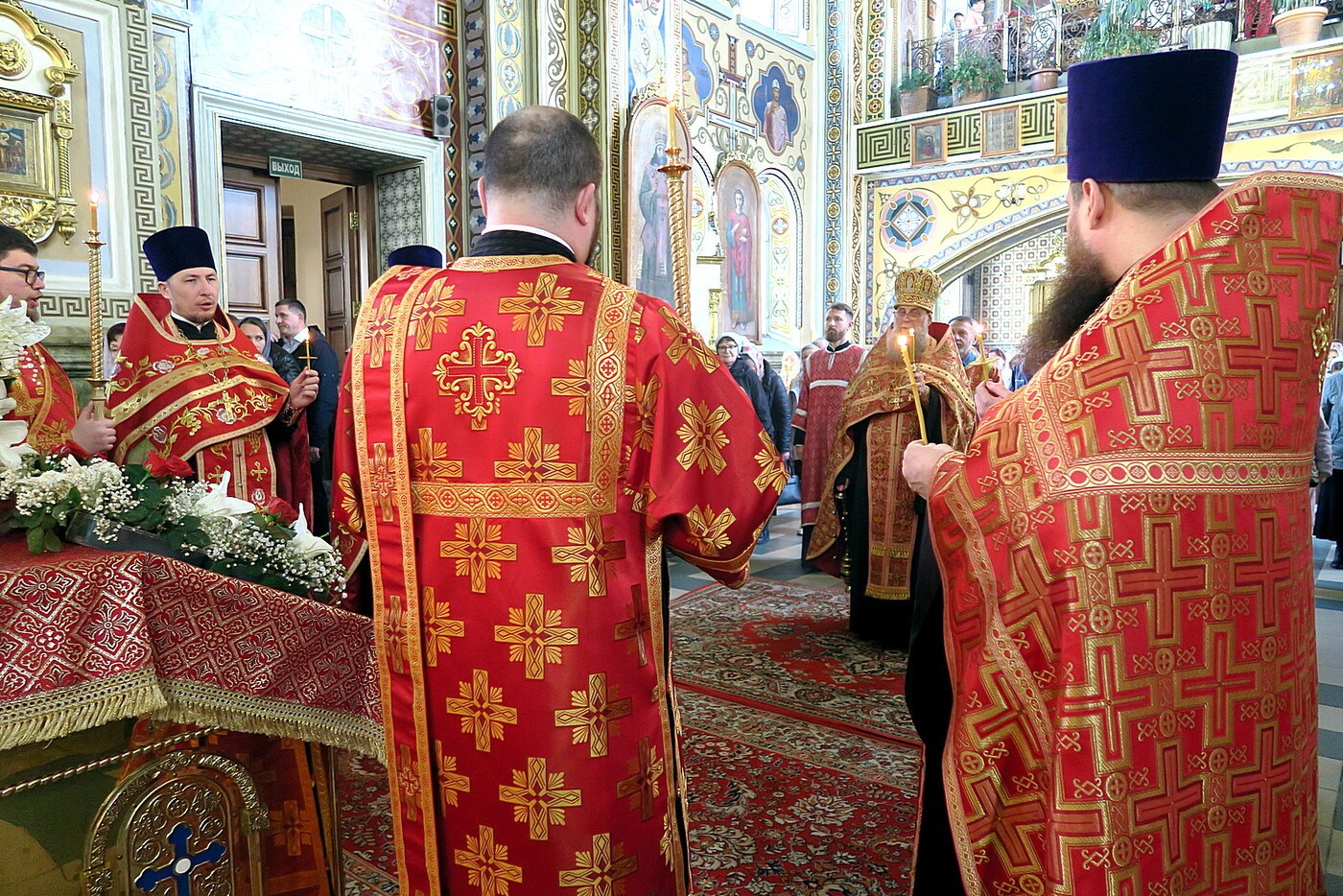 Позднюю Литургию совершил клирик храма иерей Павел Романович в сослужении протодиакона Михаила Манчука. Литургическое пение звучало в исполнении праздничного хора под управлнием регента А. И. Масюка.